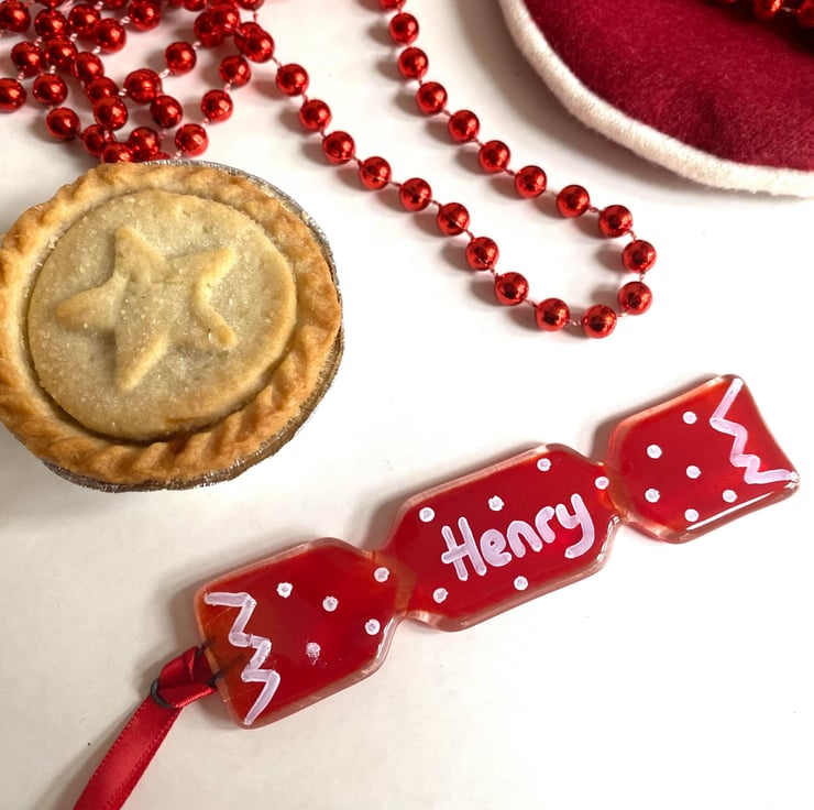 This Christmas Cracker Decoration is a perfect and unique addition to your tree or your home. You can a name added to the decoration or left blank. Please leave comment with the name you wish when ordering.