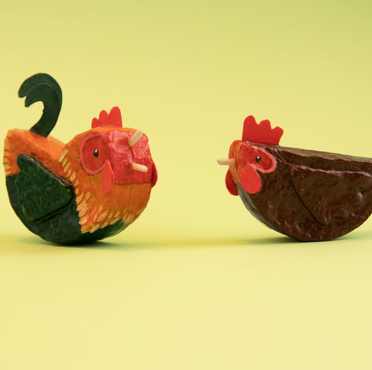 These cute little chickens are made using a traditional moulded recycled paper pulp technique with little wooden beaks, they are sold as a pair so they never get lonely on your windowsil, but if you would like a custom order perhaps to represent your own flock of chickens, please let me know and I can create a custom listing for you with your required number of feathered friends (prices may vary)