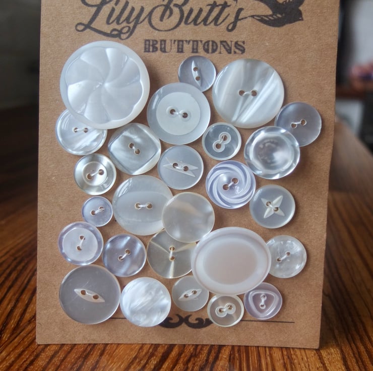 26 gorgeous vintage pearly white buttons, various shapes and sizes, great crafting selection soooo pretty!