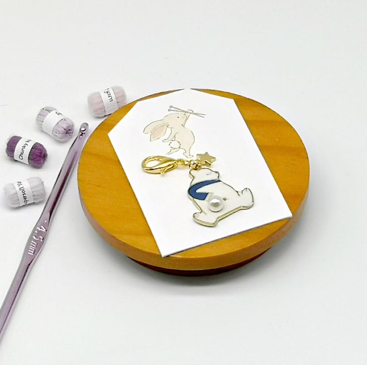 These Polar Bear Stitch Markers are just so cute!! Look at its little blue scarf!!. A tiny 24Kt Matte Gold Plated Star Charm gives this Stitch Marker a Christmassy feel. Perfect for knitting and crochet.