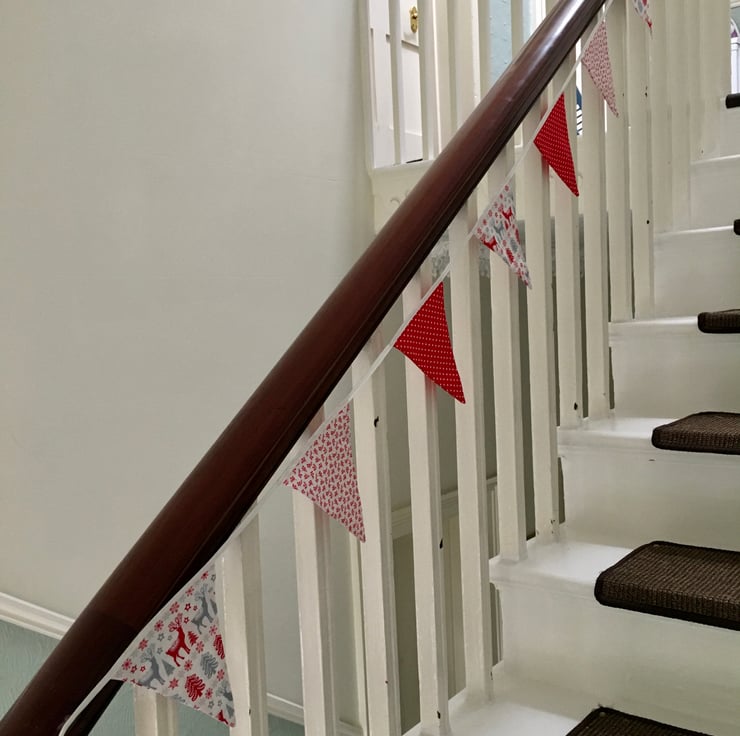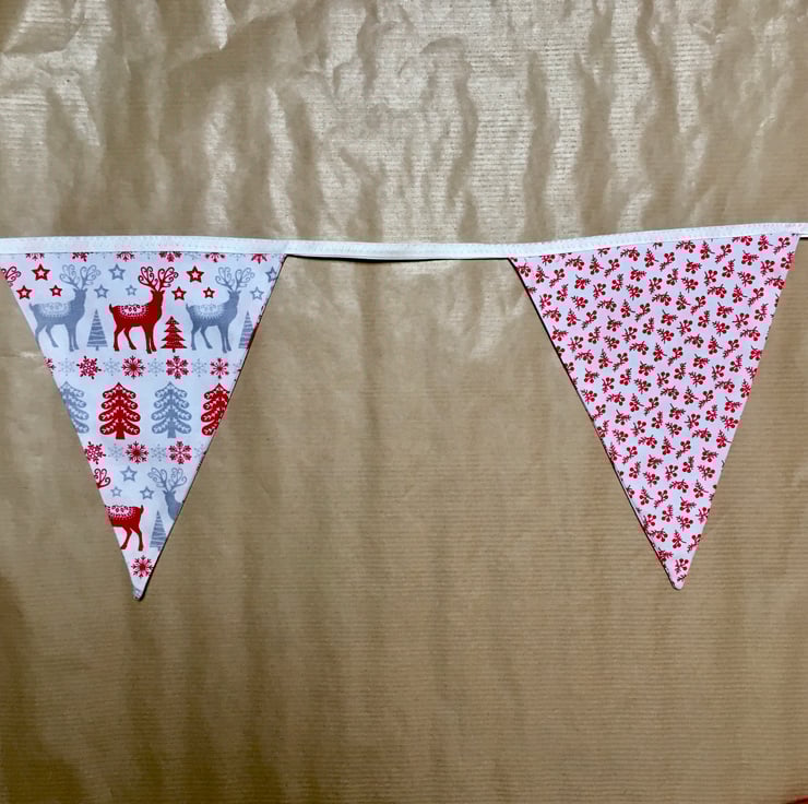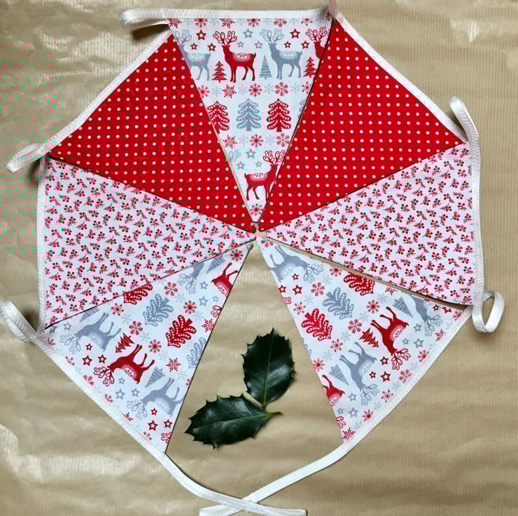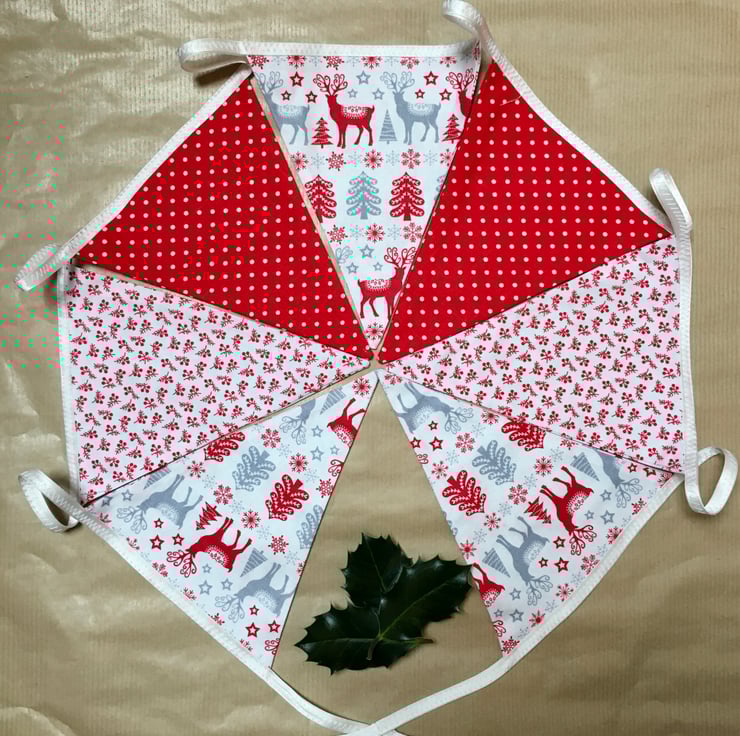 Brighten your Christmas celebration with this reusable nordic and red and white bunting.