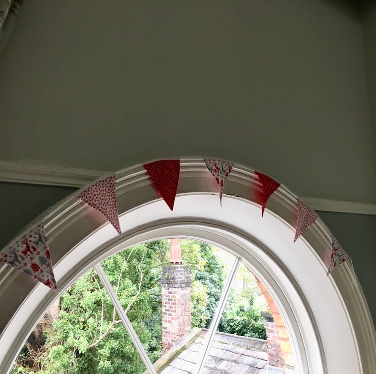The bunting is made from cotton flags and measures 200cm with small loops at each end.