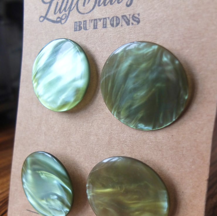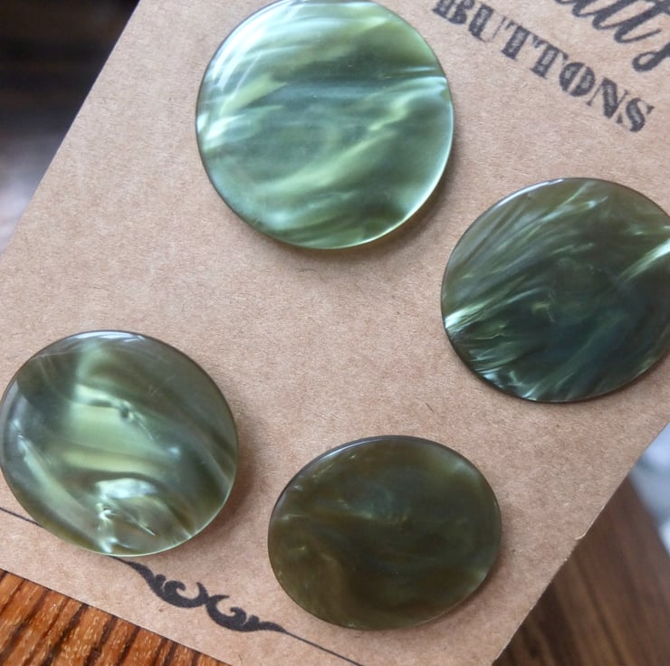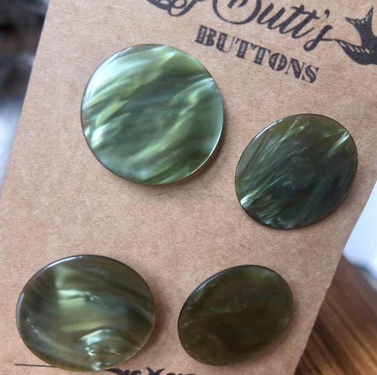 4 vintage pearly olive green buttons, these are gorgeous, would look great on a lovely hand knotted jumper!