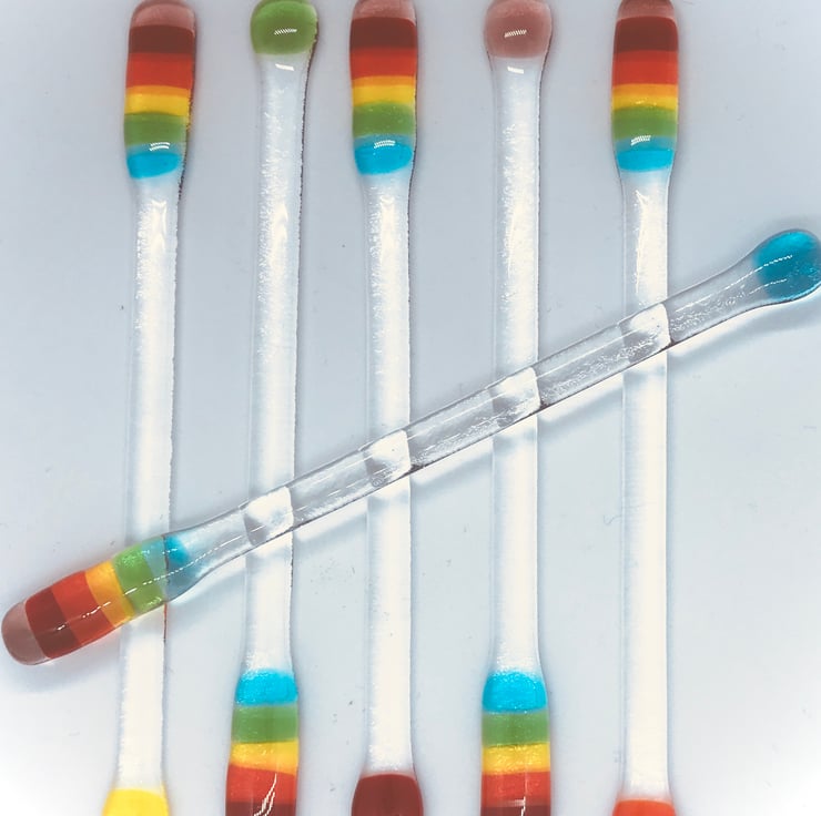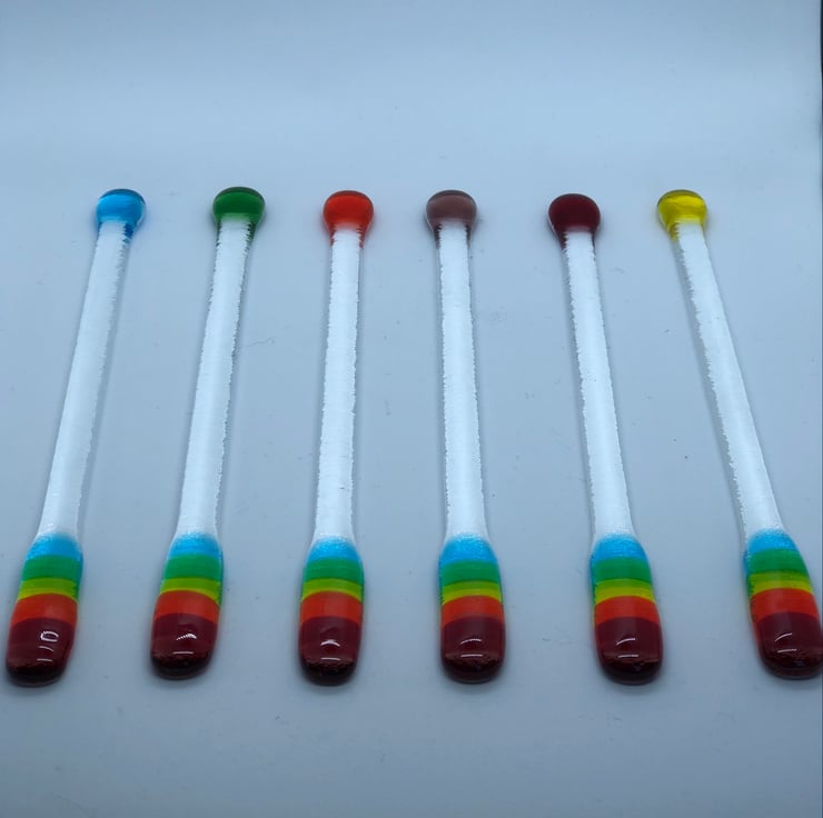 Just because we can’t have big parties doesn’t mean we can’t have fun cocktails! A set of six rainbow glass swizzle sticks will brighten up any drink. Measuring approximately 15cm x 1cm, each stirrer has a different coloured end so you won’t mix up your glass. Hand wash carefully in warm water Postage is included in the price.
