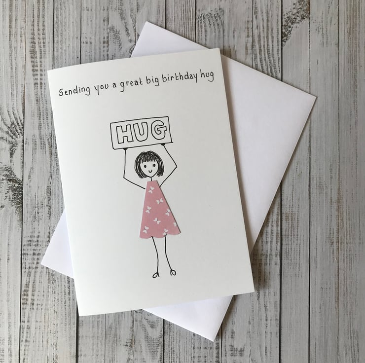 Hand drawn 'Sending you a great big birthday hug' card . Can be personalised.