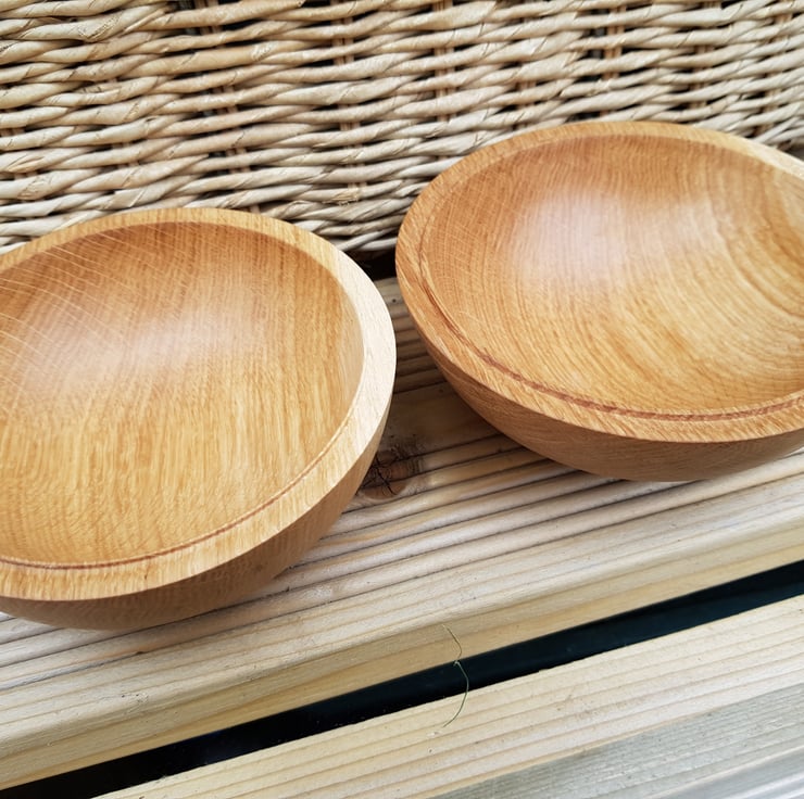 I came across a pair of Oak pieces that matched and were really nice quality, so made a pair of matching bowls, I thought that they would do well as practical items so finished them off with a food safe oil. They would make nice little bowls for nibbles or side dishes on a table.