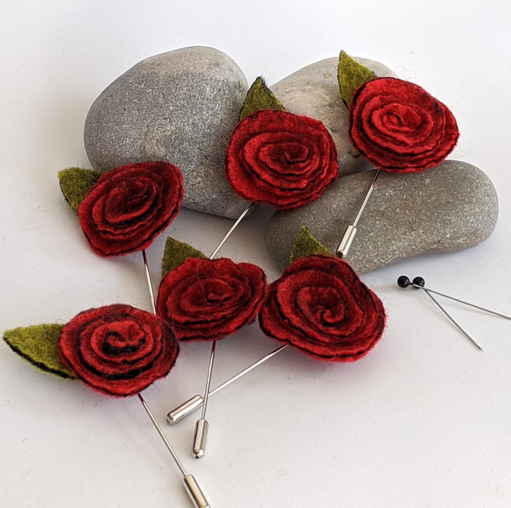 The rose is approximately 3 - 3.5cm diameter. From the centre of the flower to the bottom of the pin is 5.5 cm