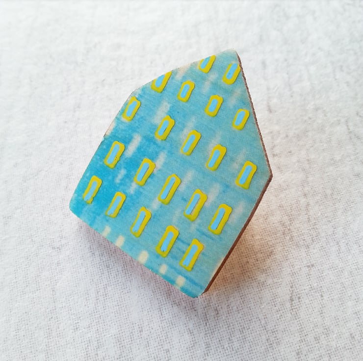 The brooch measures 3.5cm x 2.5cm with a metal lapel pin fastening on the back, perfect for wearing on jackets and jumpers. It would make a great gift for a lover of little houses and comes attached to a pretty backing card ready to give as a gift (or even keep as a present to yourself)!
