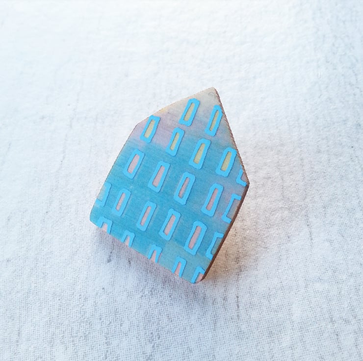 The brooch measures 3.5cm x 2.5cm with a metal lapel pin fastening on the back, perfect for wearing on jackets and jumpers. It would make a great gift for a lover of little houses and original design. The brooch comes attached to a pretty backing card ready to give as a gift or even keep as a present to yourself!