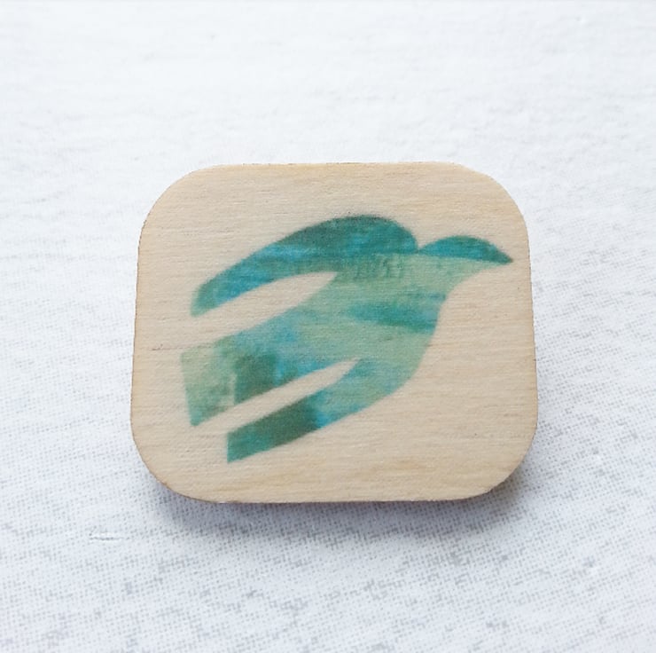 The birds are a print of an original drawing which I have transferred onto a 3mm thick tablet of high quality birch ply - choose between one or two birds on your brooch by selecting 'Choose Options'.
