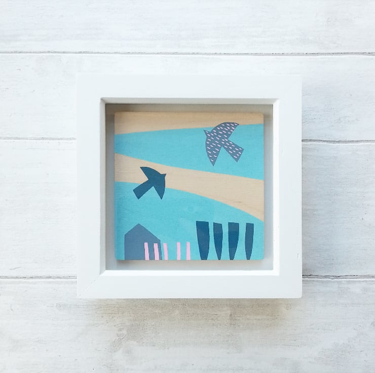 This one of a kind wooden picture has been individually screenprinted by hand onto a 5" birch ply tablet. I've layered some of my favourite shades of blue and pink to create a unique print, with some areas left blank to show off the lovely grain of the wood.