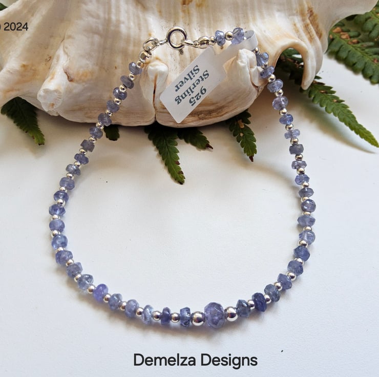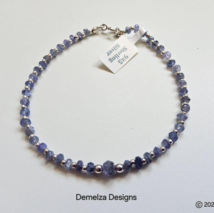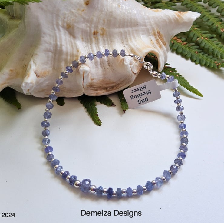 A sweet delicate feminine looking bracelet designed and lovingly hand crafted using irregular faceted rondelle cut ungraded tanzanite bead gemstones.