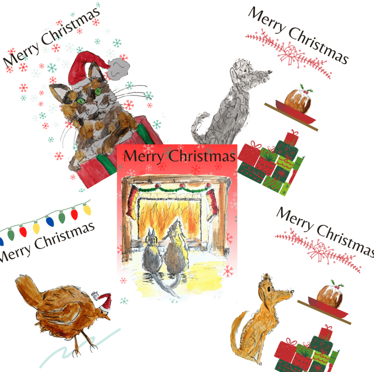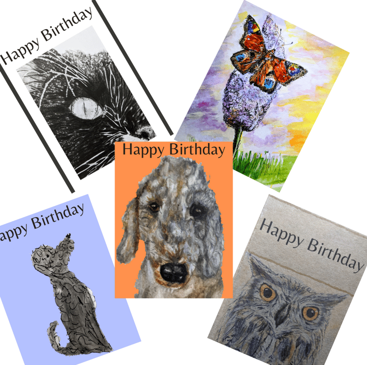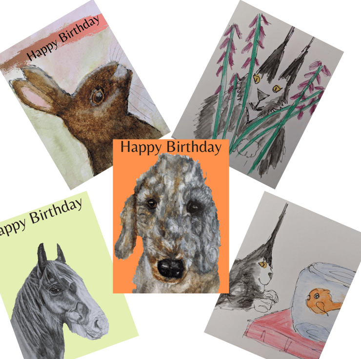All of my cards are inspired by my pets, the ones I look after, or nature and the wildlife around me. I love creating paintings, drawing and illustrations with animals and nature in mind.