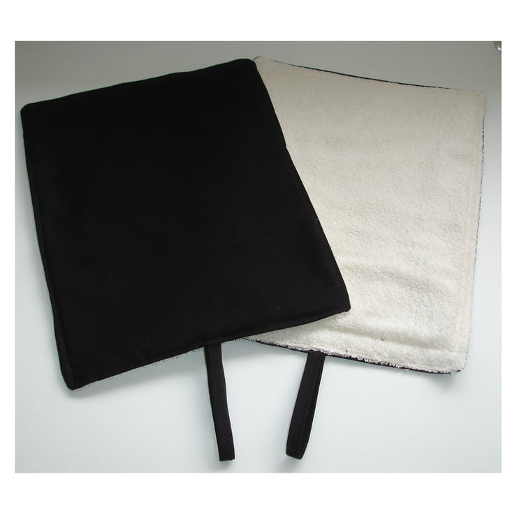 Each mat has three layers - Facing cotton fabric, a layer of padding and a layer of towelling - Making it also suitable for mopping up and pot-grabbing!