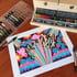 A large wooden laptray featuring the Wiccan/Pagan Wheel of the Year handpainted in acrylic paint and outlined in gel pens and Posca pens.