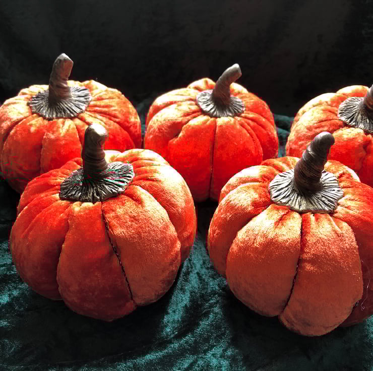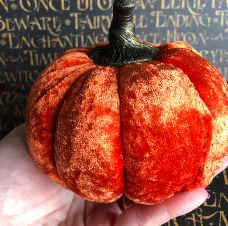 These beautiful crushed velvet pumpkins measures 13cm x 13cm and are lightly fragranced with Pumpkin Spice which gives them a subtle and beautiful aroma.