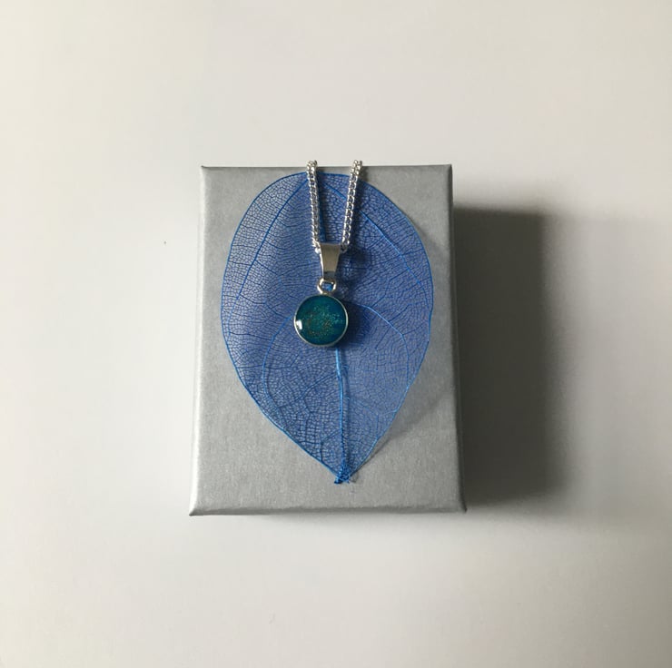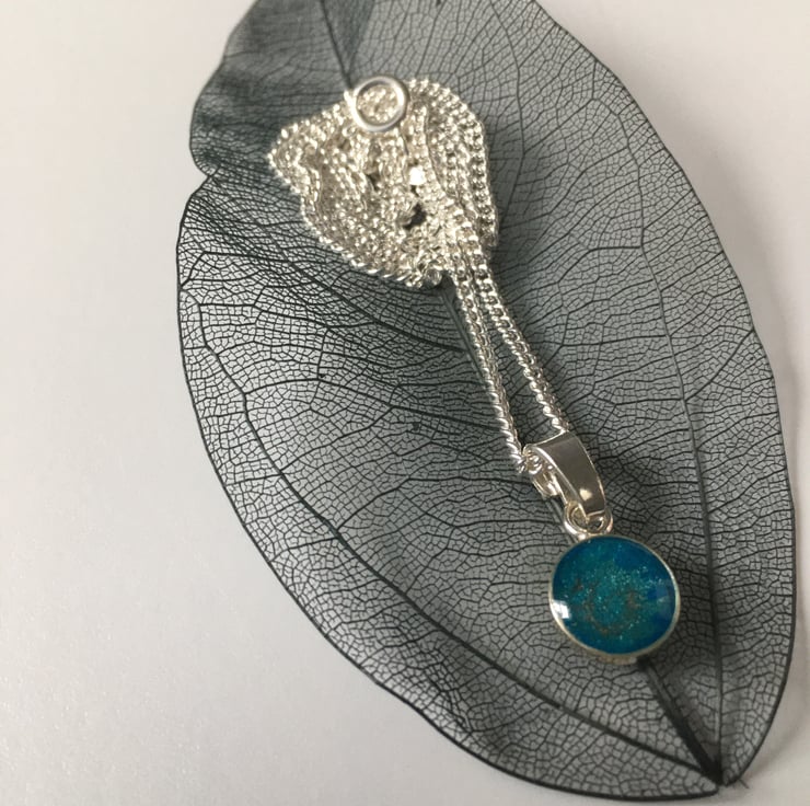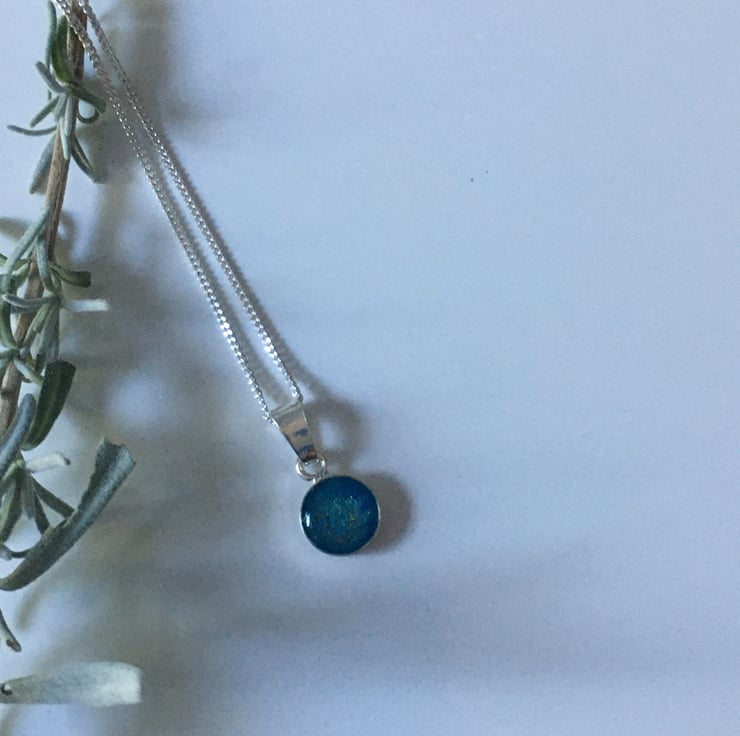 Dainty little blue pendant made using Epoxy Resin and Mica powder made from natural minerals.