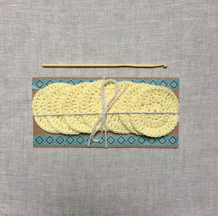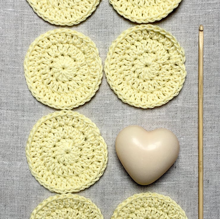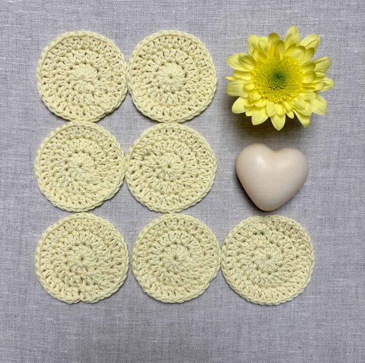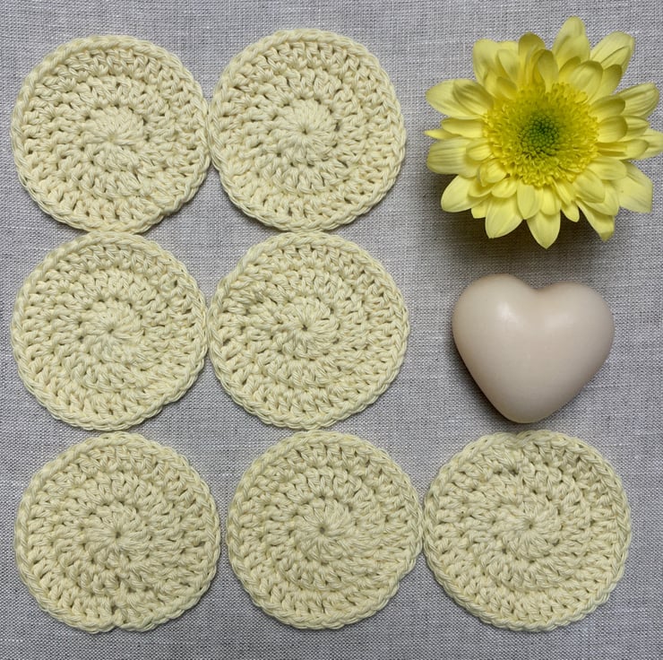 They are hand crocheted from 100% cotton yarn so each one will be unique. Each pad measures approximately 7cm in diameter.