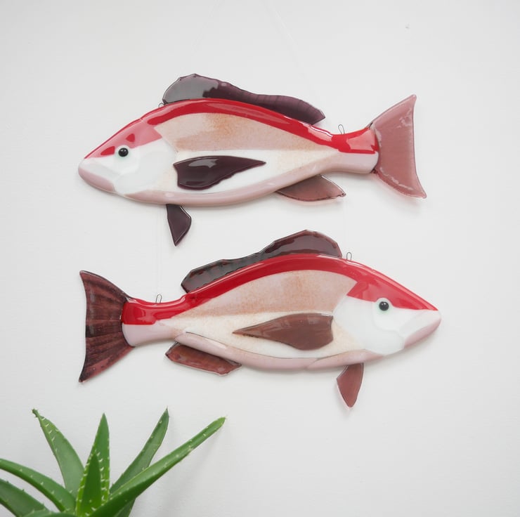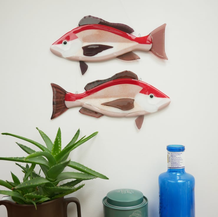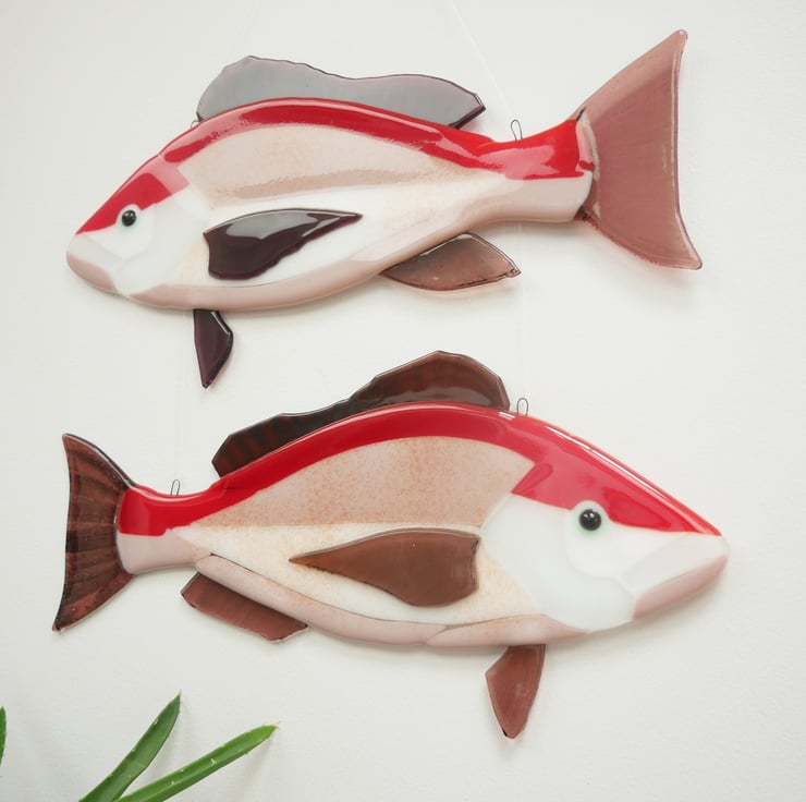 Featuring vibrant red and pink backs, these Red Snapper wall hanging fish decorations are perfect for adding a splash of ocean themed colour to any space.