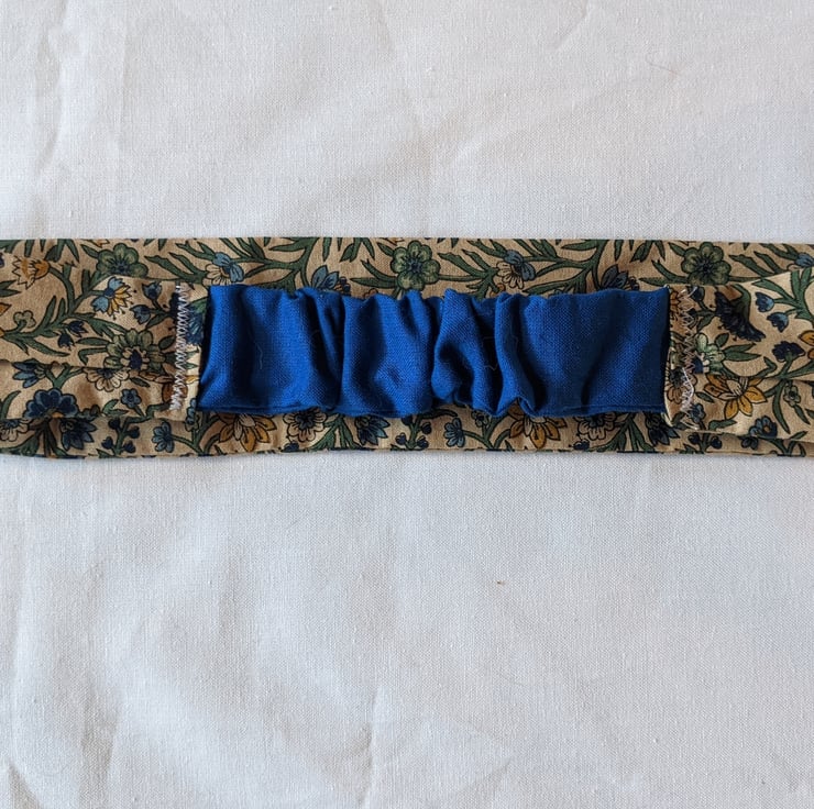 This is a 100% cotton hairband made out of a gorgeous autumnal vintage fabric with a floral pattern. It's approximately 21.5 inches around, plus stretch, with an elastic panel at the back. This design even works on my very fine slippery hair - I made a few for myself and I have to adjust them way less than I do with any other headband I own. A perfect accessory for casual or dressy outfits.