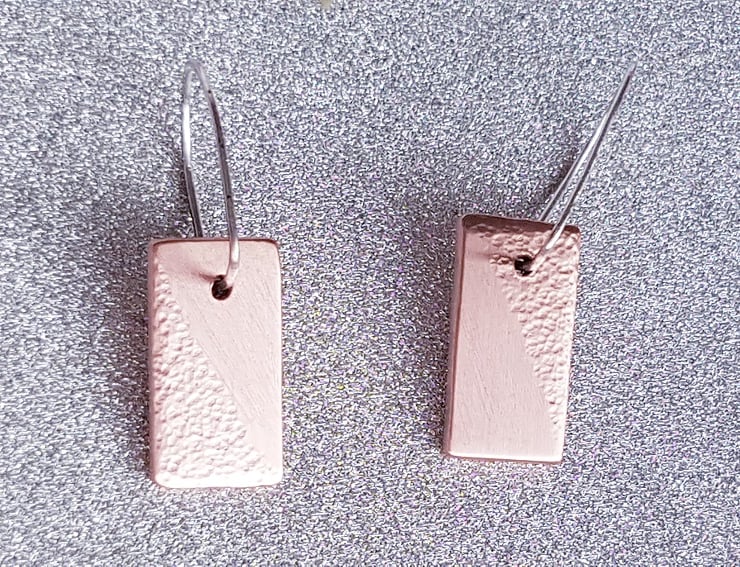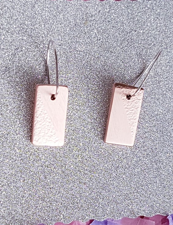 Really cute little rectangular half dimpled/hammered earrings.