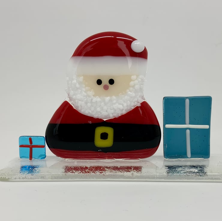 Hand Cut from coloured glass and fused twice in my Glass Kiln.
