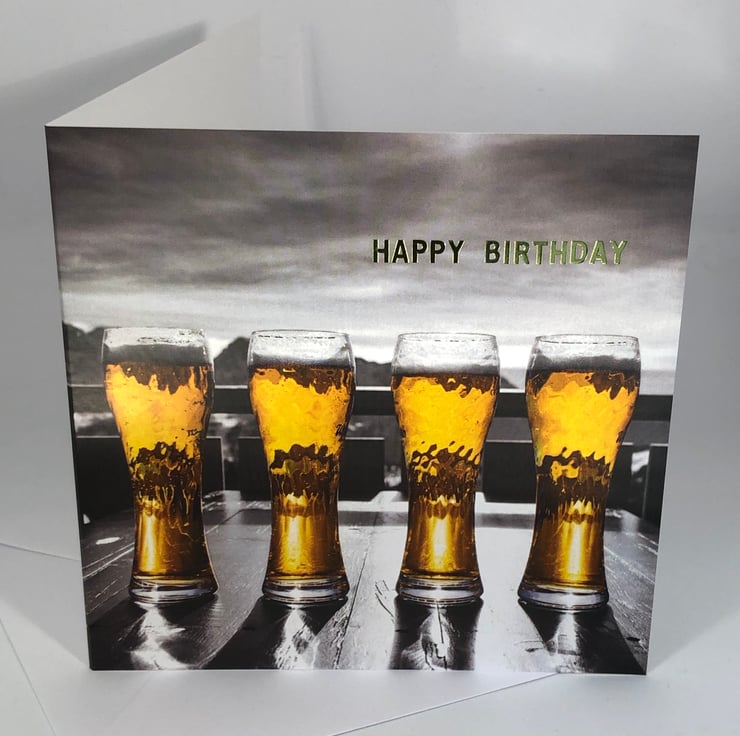 The 'Happy Birthday' message is then hot foil stamped in metallic foil onto the printed card using one of my hot foil presses.