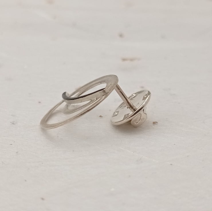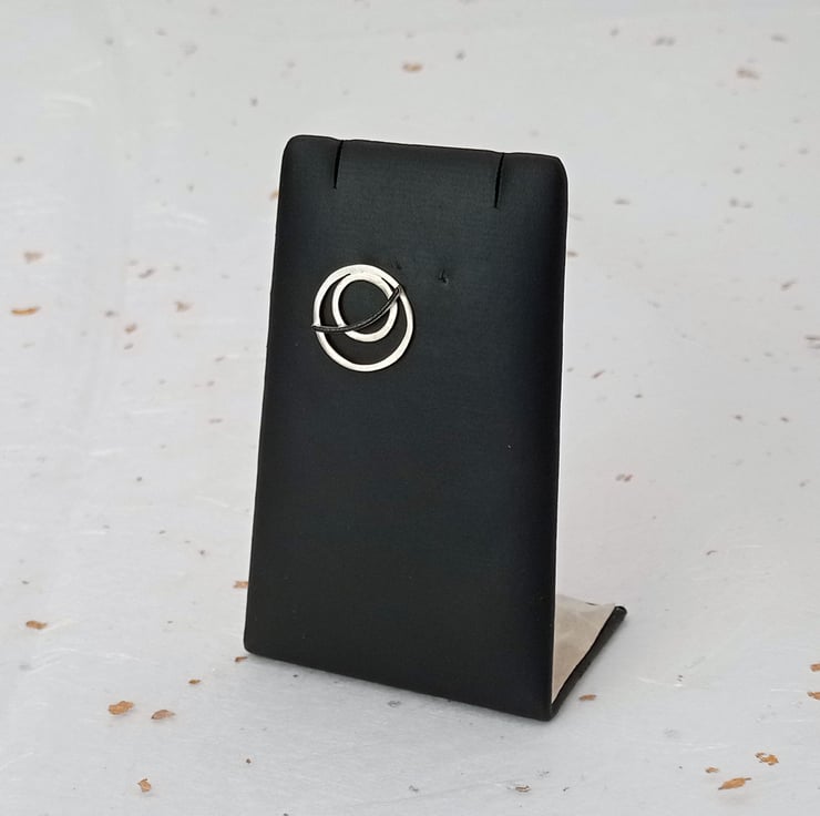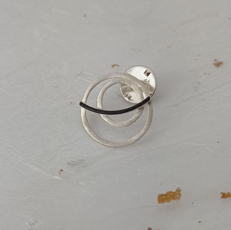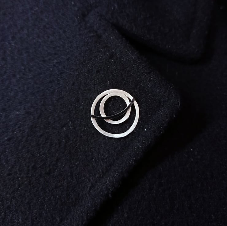 I was inspired to make a range of lapel pins as I've not made these before but love the freedom of creativity; this sterling silver pin shows 2 circles joined with wire.
