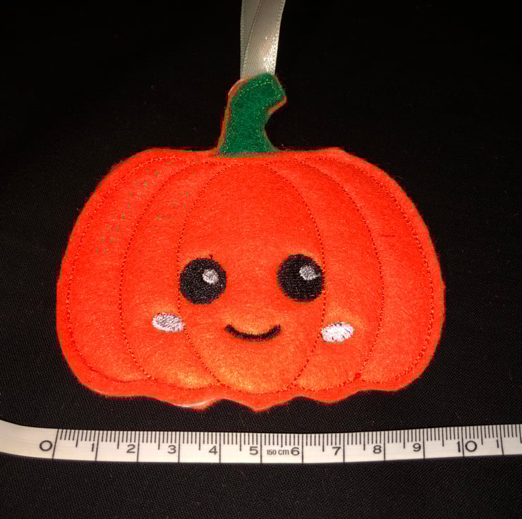 This listing is for one Halloween Pumpkin decoration. This pumpkin measures 10 cm round and is made from felt with a ribbon hanger.