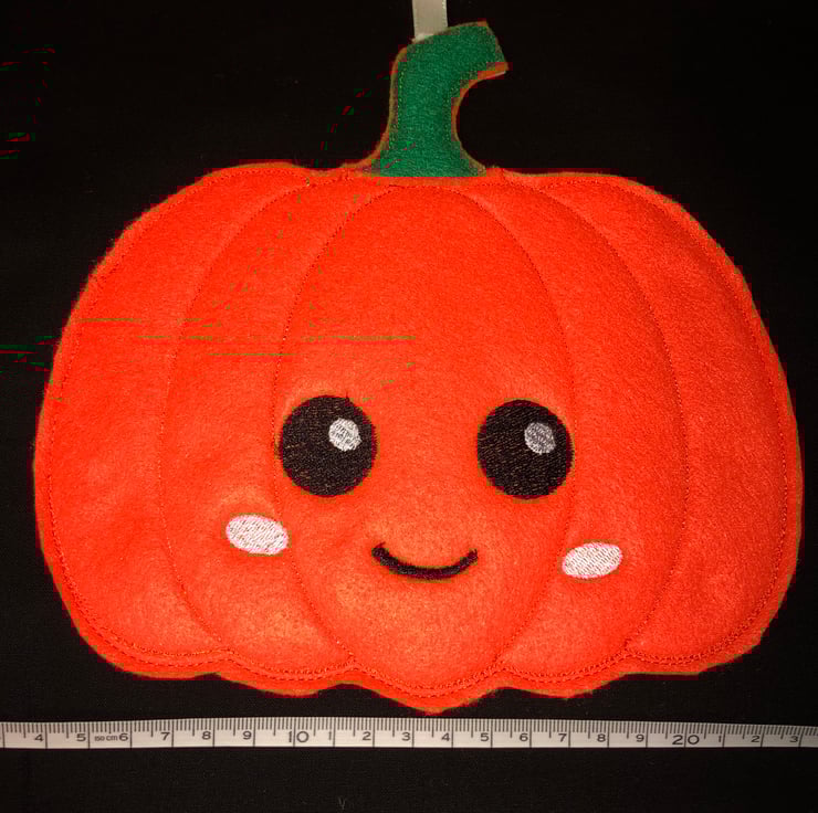 This listing is for one Halloween Pumpkin decoration. This pumpkin measures 20 cm round and is made from felt with a ribbon hanger.