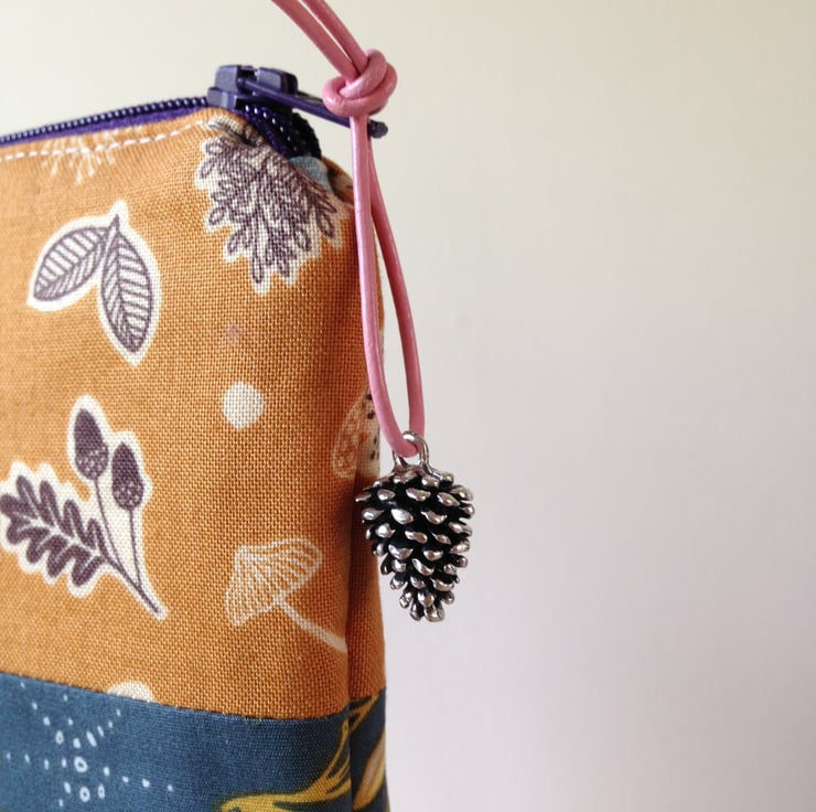 It comes with a sweet pine cone zip pull and a matching stitch marker plus rose gold star clip to hang them on.