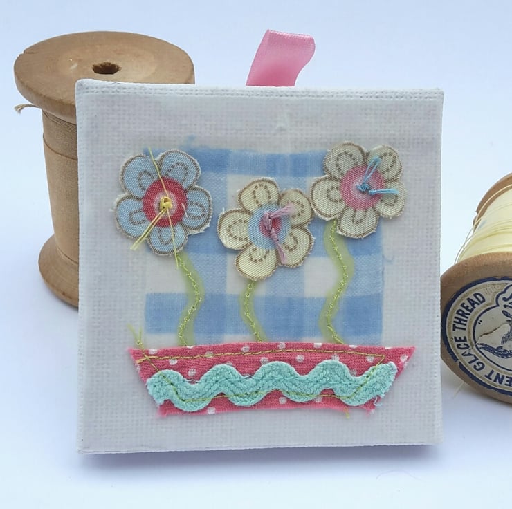 This canvas measures 7x7cm and is 1cm deep and comes with a loop for hanging. A decorative feature, bringing a glimpse of summer into any room of the home.