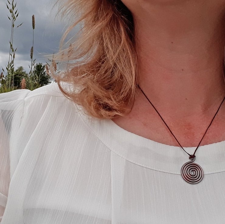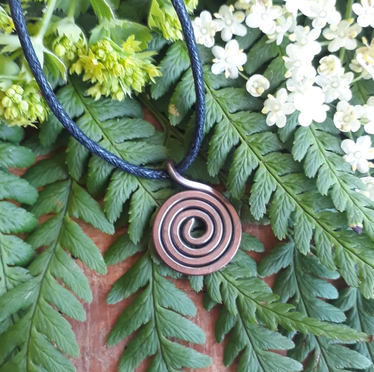 An oxidised copper wire spiral Pendant necklace, with a tribal, druid or Celtic rustic feel, an ideal birthday gift for him or her. All my jewellery is handmade by me and as my business name suggests, everything has got a spiral in it somewhere! This simple pendant looks great and is a fab addition to an everyday outfit.