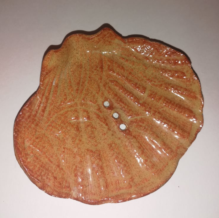 SS10 Glossy speckled orange/beige flatter shell shaped, four round flower feet.