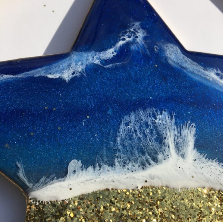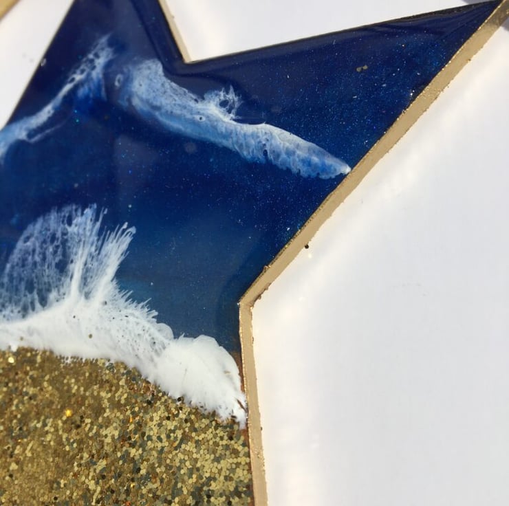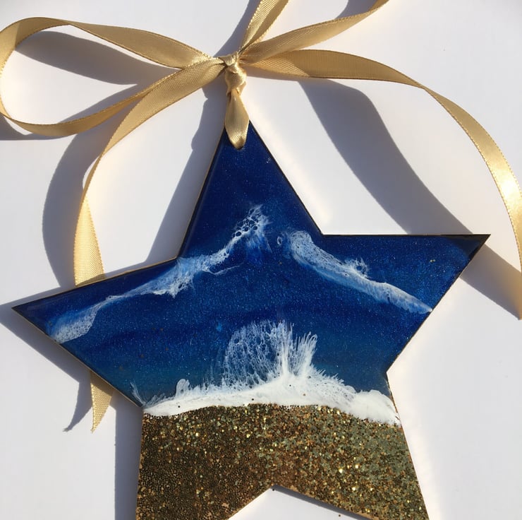 Beautiful Coastal Christmas decorations made of MDF, resin and glitter. One of a kind .