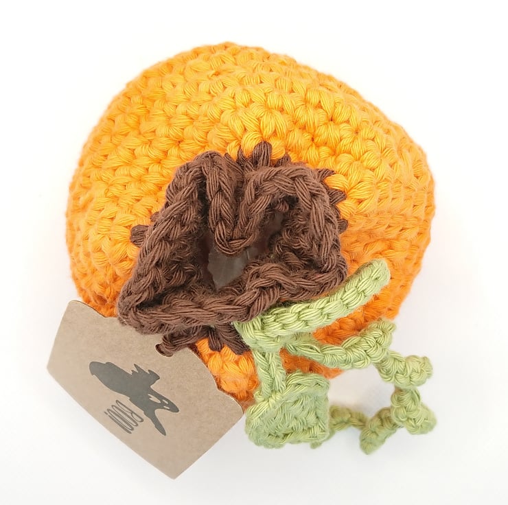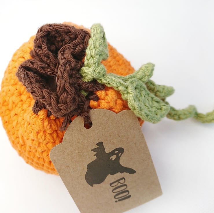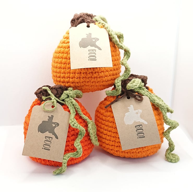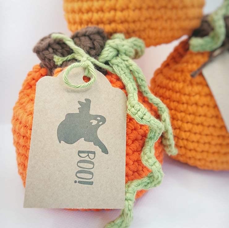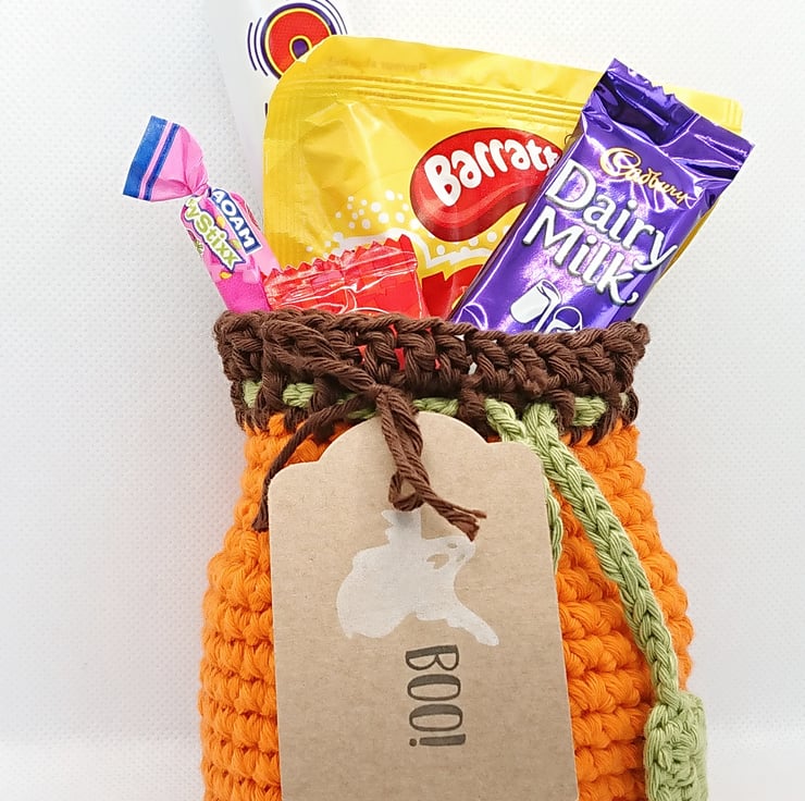Crochet Pumpkin Treat Bag - all ready to pop some Halloween sweet treats in for the kids or to give as a gift. Even better, the bag is reusable every year.