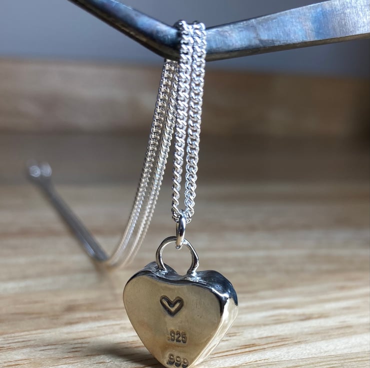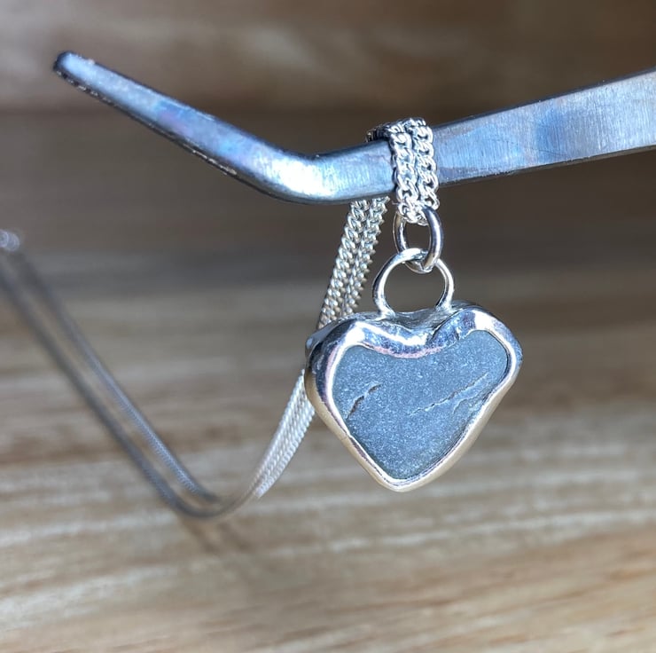 Lovely heart shaped grey welsh pebble and silver pendant on an 18’’ 1.5mm sterling silver curb chain (20’’ and 16’’ also available please leave a note upon ordering)