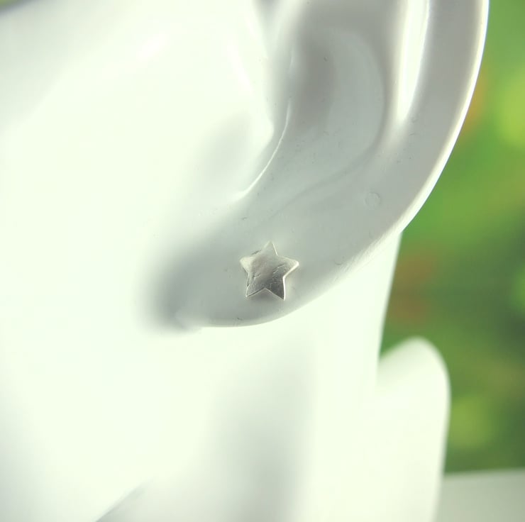 Sterling Silver Star Studs. Recycled hand molded 5mm matte finish earrings.
