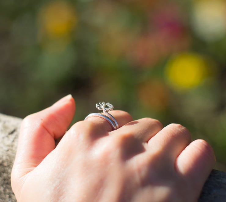 Sterling silver daisy with an 18ct gold disc in the center, or tube set 3 mm citrine - see pictures.