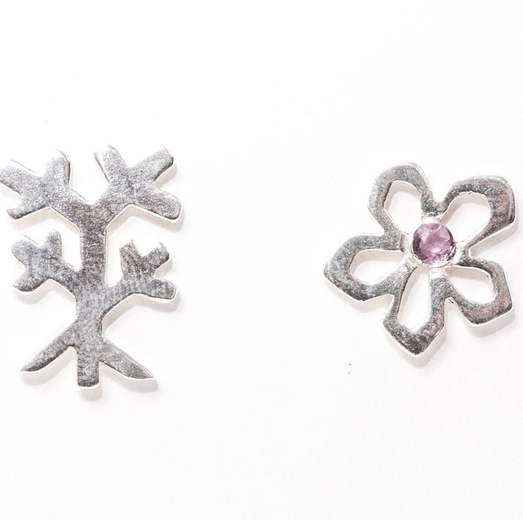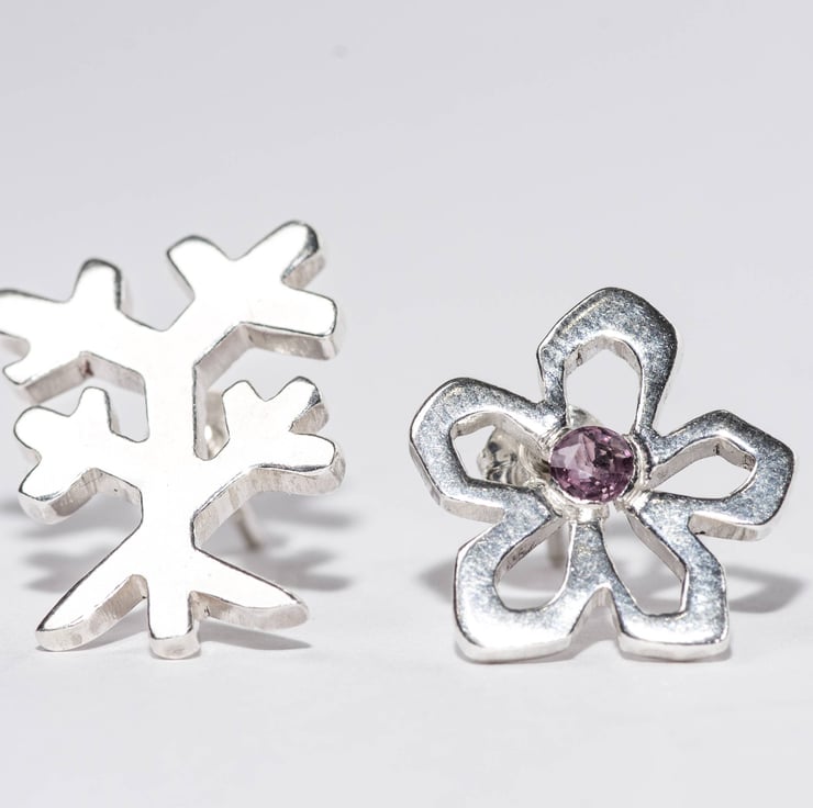 Tao Hua Earrings, Unique Handmade Sterling Silver with Ruby