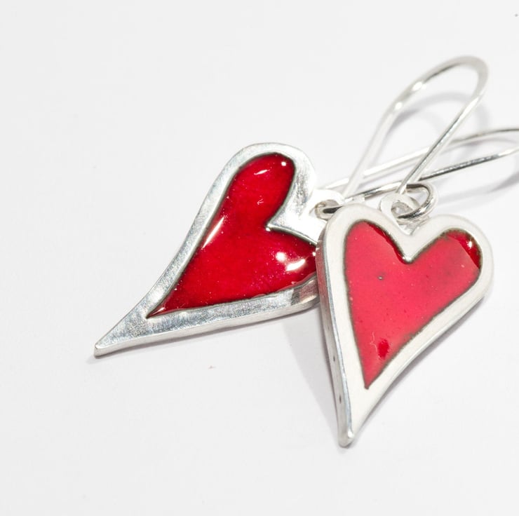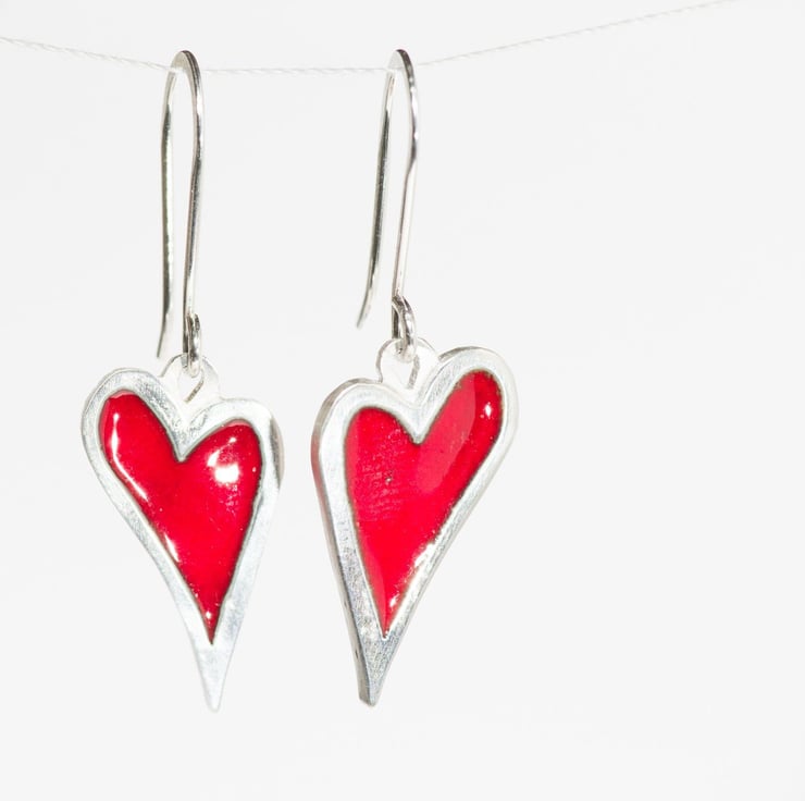 Vivacious red vitreous enamel set in solid silver is a stunning accent for a relaxed day yet smart enough and comfortable enough to wear in the office. Teamed with the lovely My Quirky Heart necklace (https://folksy.com/items/7570445-My-Quirky-Heart-Necklace-Red-Enamel-Sterling-Silver-Pendant) they are perfect for special occasions and evenings out.