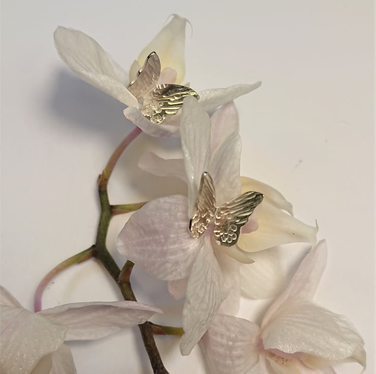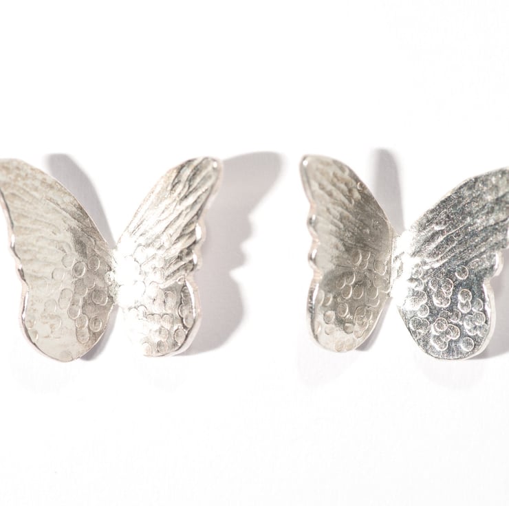 I love the hammered texture on jewellery, it reflects the light and enhance the beauty of the silver. I found these hammered effect represent the spreading wings perfectly.