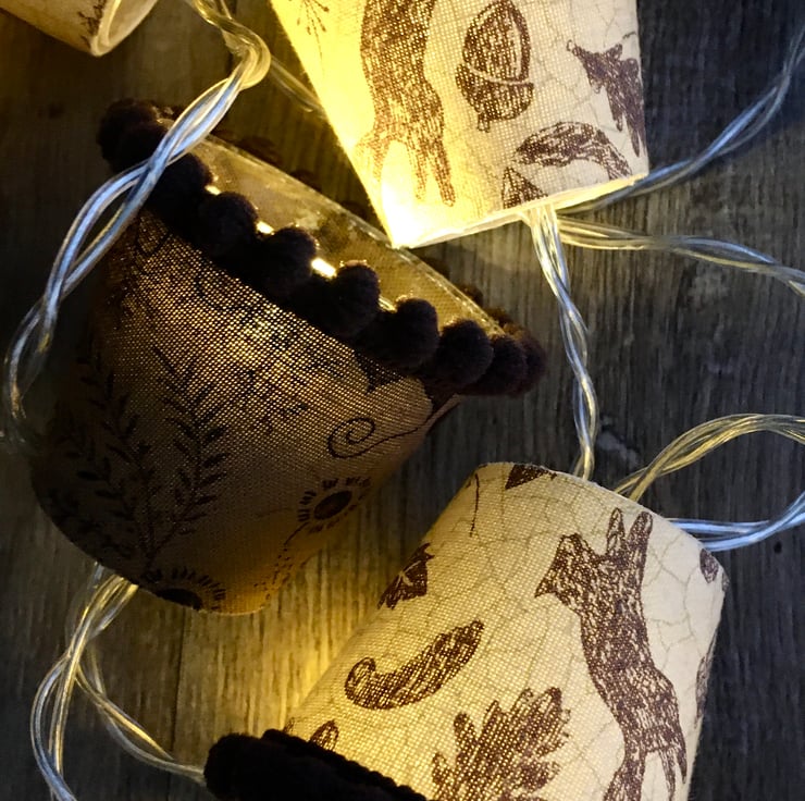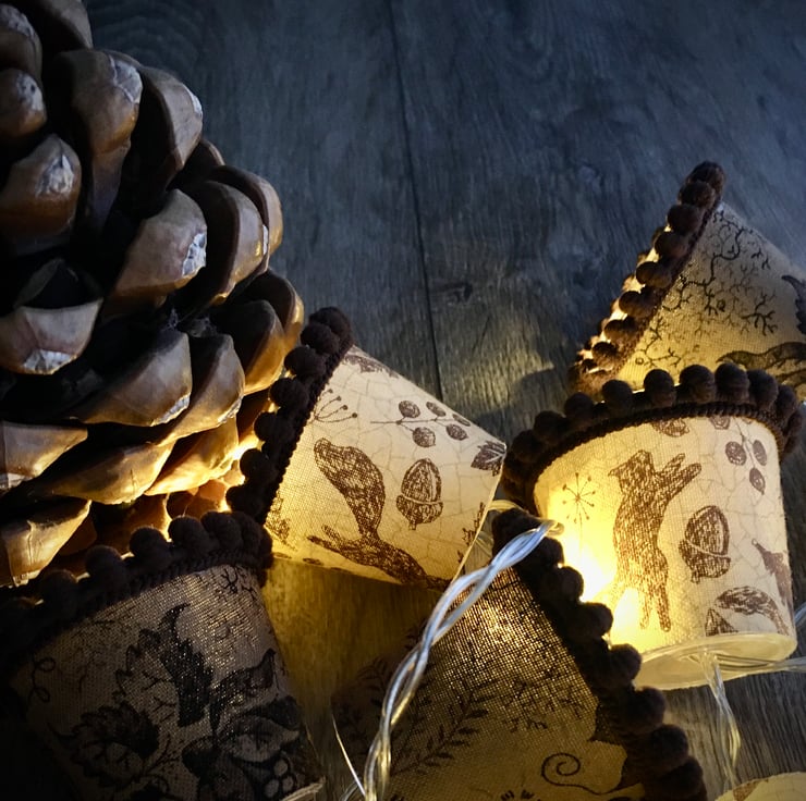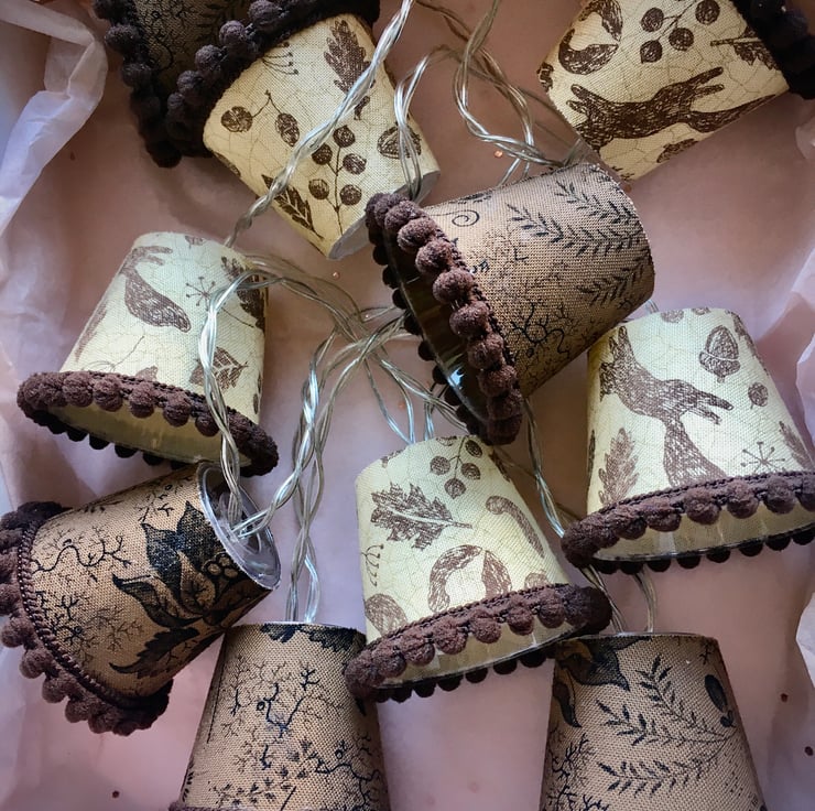 I also do custom lights to order, and can even use your own special fabric, so please contact me if you would like a particular colour combination to fit with your decor, or have a specific fabric in mind. Just remember that these are mini lampshades, so the prints I use have to be mini too!