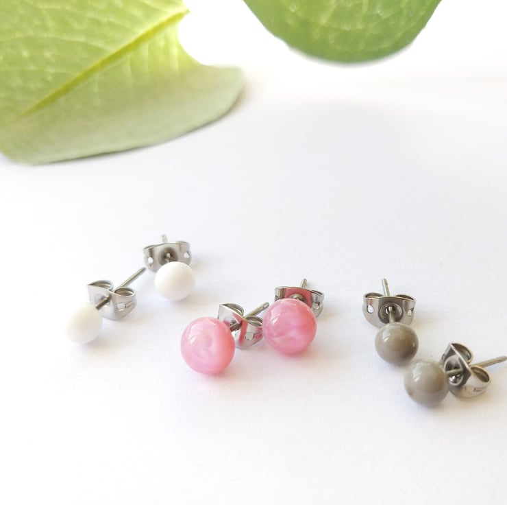 These earrings are designed to last! They have been created using a technique called lampworking which means that the post gets set into the glass. Therefore zero adhesive has been used to attach the post to the glass (which eventually would fail over time). The studs are annealed in the kiln too which adds extra strength to the glass and makes them super durable. These studs can be worn swimming, in the shower, under the heat of a hairdryer etc and they tollerate being dropped and trodden on really well! Amazing right!