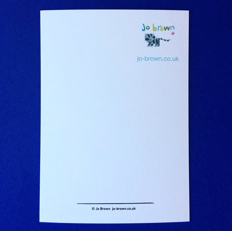 Matt, coated on front, uncoated on back so you can write on it if you feel like it. Jo Brown cat logo on back