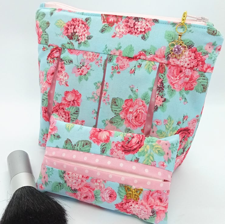A very cute two part set comprising a pleated make up bag (18x15x6cm) and a tissue holder.