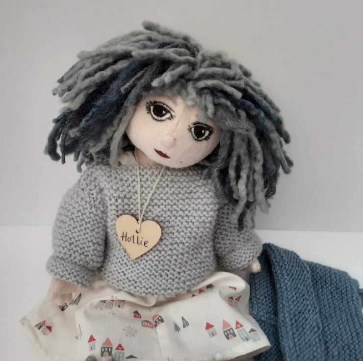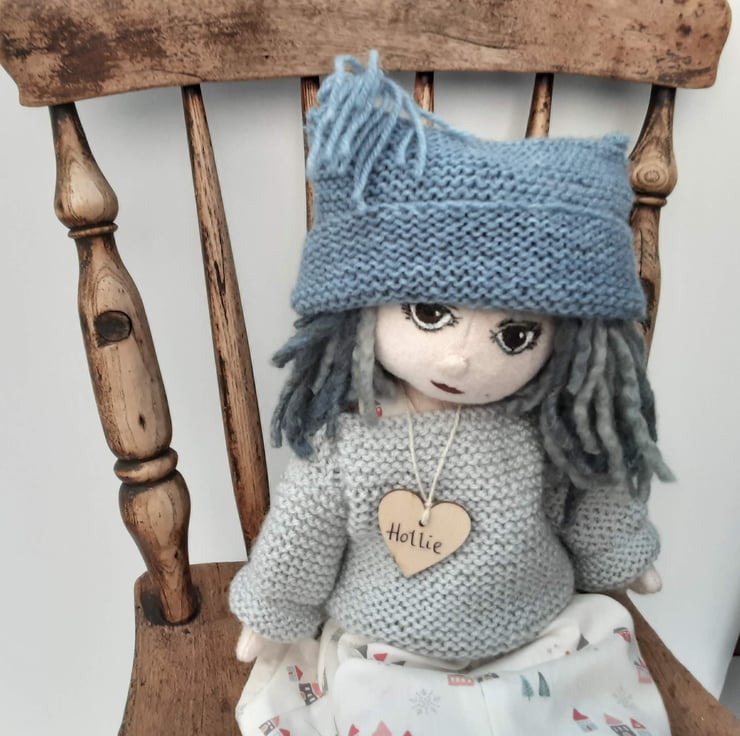 REDUCED. Collectable Cloth Doll, Hollie a Handmade keepsake doll, Christmas doll