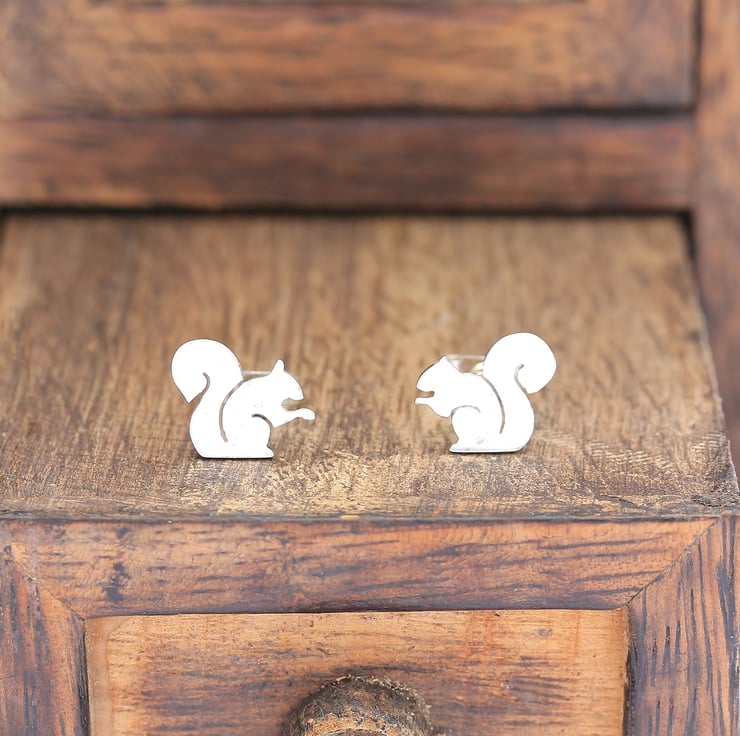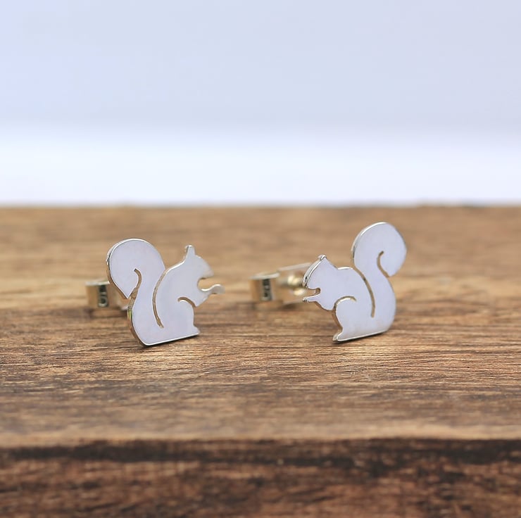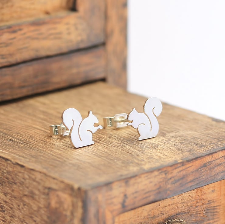 A pair of sterling silver squirrel stud earrings. A cute pair of woodland-inspired stud earrings, perfect to wear every day!