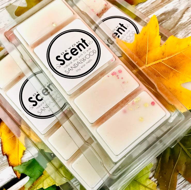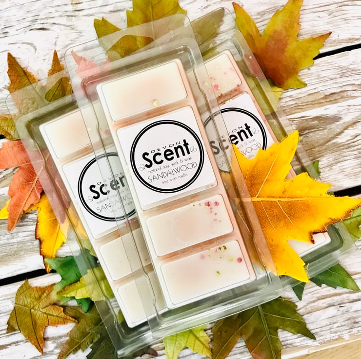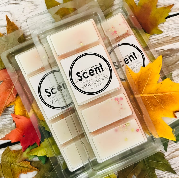 The scent from our Sandalwood Snap Bar Soy Wax Melts have a rich accord with notes of creamy sandalwood and uplifting vetiver, leading to a heart of spice on a base of creamy vanilla, cedarwood and warm amber.