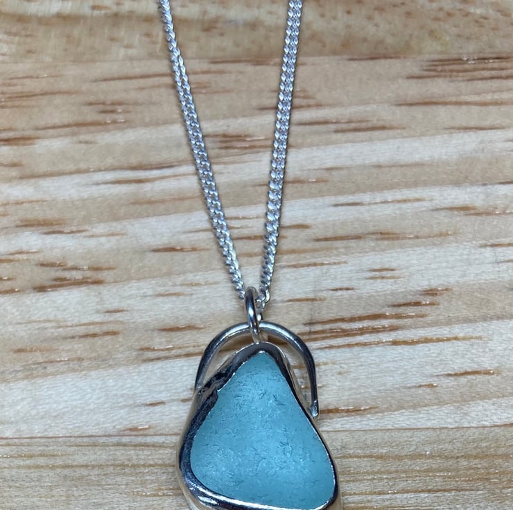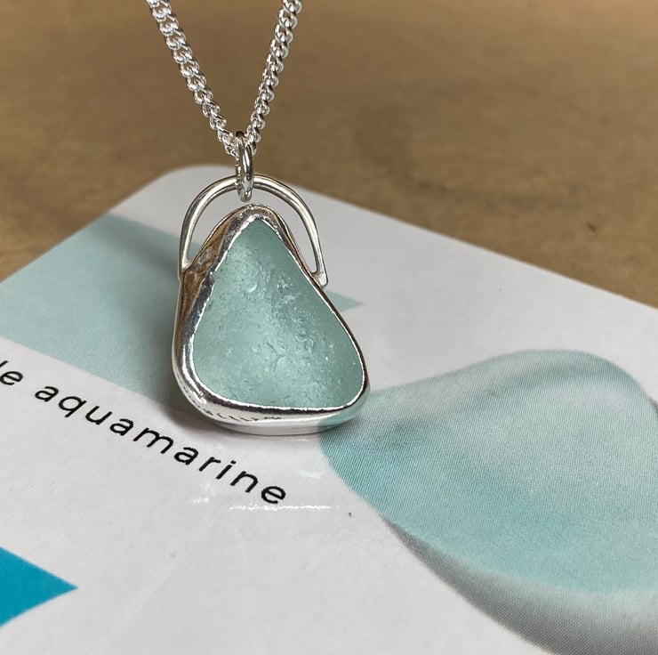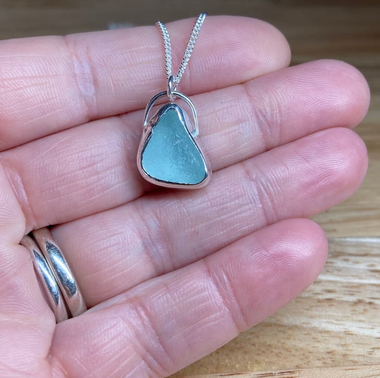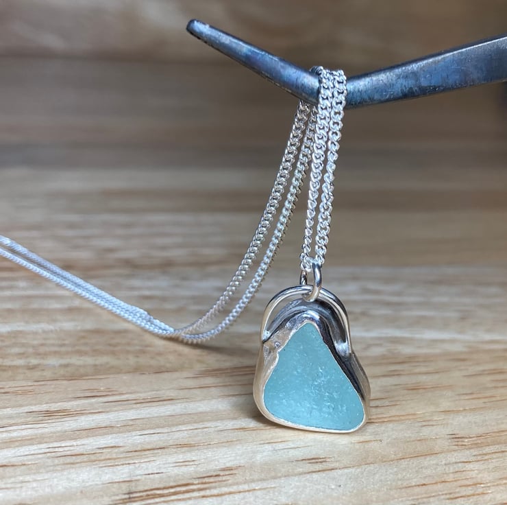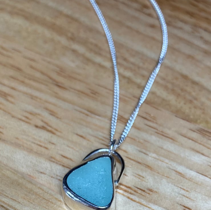 Beautiful pale aquamarine welsh sea glass and silver pendant on an 18’’ 1.5mm sterling silver curb chain (16’’ and 20’’ also available please leave note upon ordering)